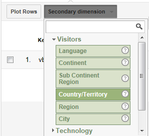 To see where the person who wrote that Search located, just click the “Secondary Dimension” menu and Visitors Group.